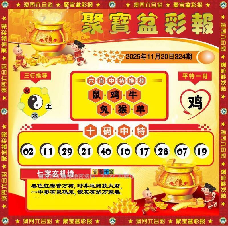 328期:七字玄机诗【本期三六合数开,四六喜逢财神到。金鸡报晓在三更,运转乾坤化吉祥。】